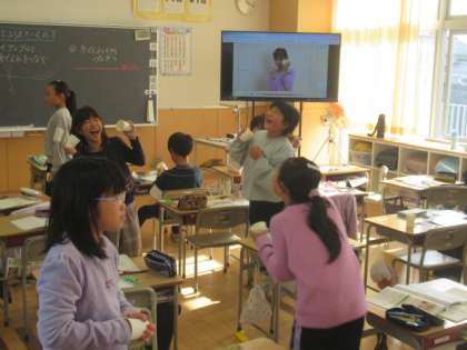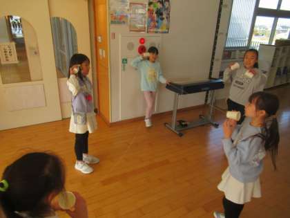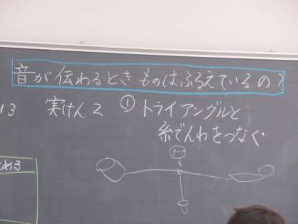 「音のせいしつ」の学習をしています。 「糸電話」で、声は聞こえる? どうしてかな?