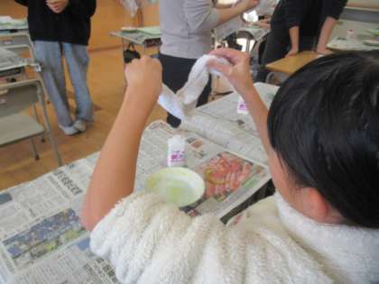 水で固まる粘土? と布を使って作品をつくります。 どのような芸術作品が出来上がるのか、楽しみです。