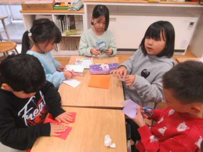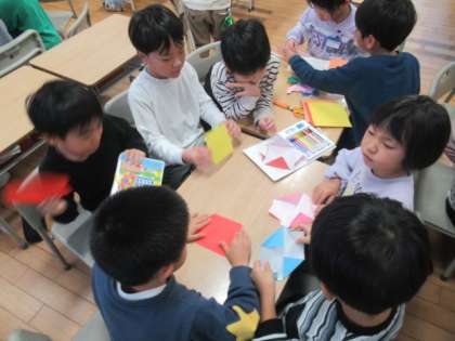 一生懸命に「折り紙」をしています。 何ができ上がるのか楽しみです・・・
