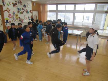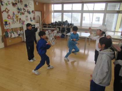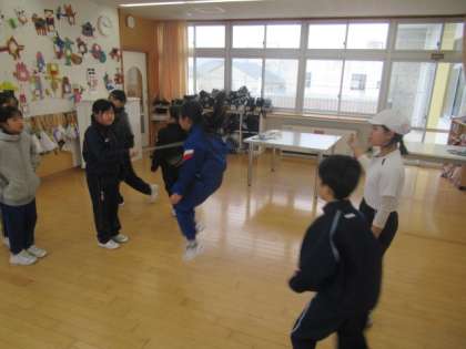大縄8の字跳び・・・ 縄を回すスキルも大切ですね。