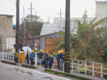 学校付近では、傘を差さずに歩いている様子が見られます。