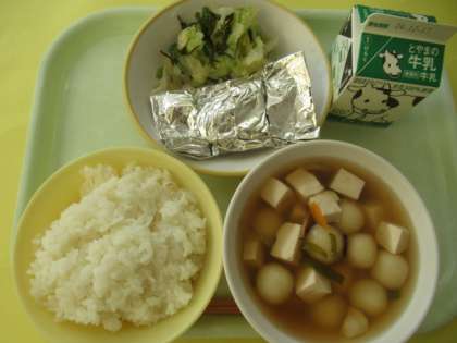 10日(火)今日の献立 公開日 2024/12/10 更新日 2024/12/10 給食室 ・ごはん ・牛乳 ・さばの銀紙焼き ・昆布和え ・白玉汁 ※11時45分、検食終了。 今日も美味しく出来上がっています。