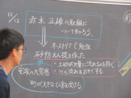「郷土の伝統・文化と先人たち」の学習をしています。 水橋地域にも流れる常願寺川の治水・砂防について・・・