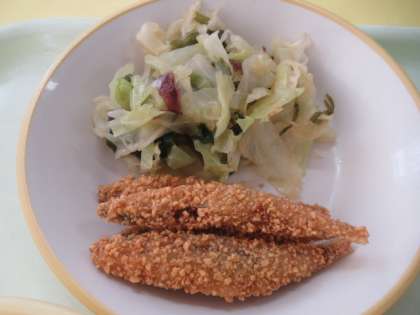 17日(火)今日の献立 公開日 2024/12/17 更新日 2024/12/17 給食室 ・ごはん ・牛乳 ・厚揚げの中華煮込み ・海藻サラダ ・きびなごのさくさく揚げ ※11時50分、検食終了。 1・2年生の「きびなごのさくさく揚げ」(画像2枚目)は「3個」ずつです。3年生以上は「4個」ずつです。「きびなご」は、体長10cm程度の、「わかさぎ」に似た魚ですね。「きびなご」はあたたかい水(海)の魚、「わかさぎ」はつめたい水の魚と区別すればいいでしょうか。
