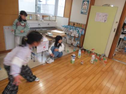 「ボーリング・コーナー」では・・・ 「たおれたぁー!」