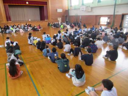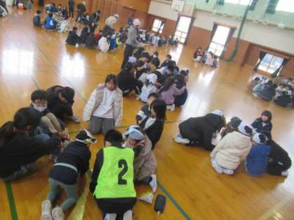 あいさつ運動ふり返り(全校) 公開日 2024/12/20 更新日 2024/12/20 6年生 なかよし班(縦割り班)ごとに、2学期の挨拶運動を振り返り(よかったところ、足りなかったところ など)ました。 3学期からの生活に生かしてください!