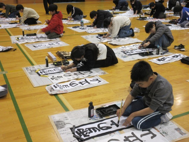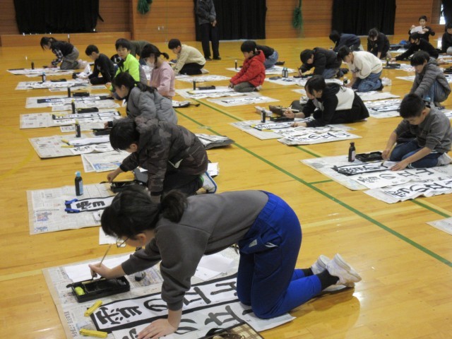 書初大会では、冬休みの練習の成果を発揮できた子が多かったです。