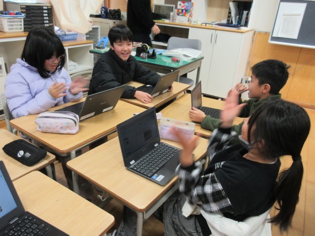 冬休みの思い出発表では、思い出をスライドにまとめて、グループの友達に紹介しました。