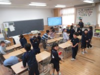 書初大会を行いました。一画一画丁寧に、力を込めて書いていました。