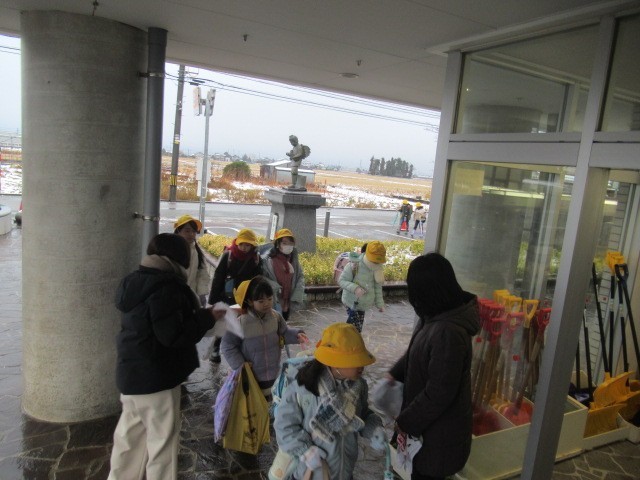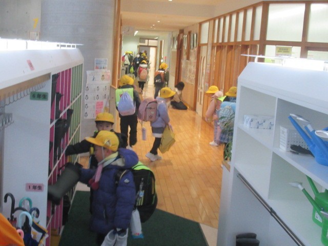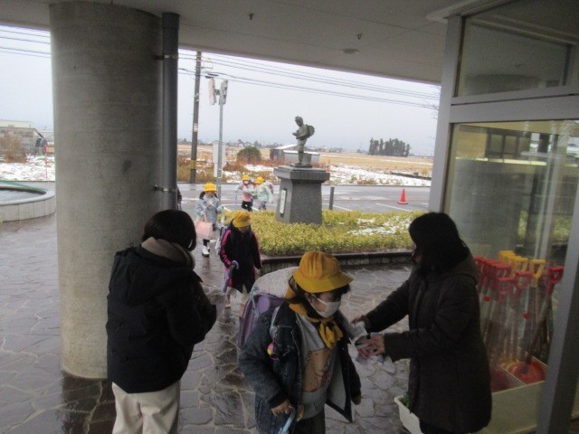雪雨により濡れてしまった安全帽子やランドセル、上着・・・