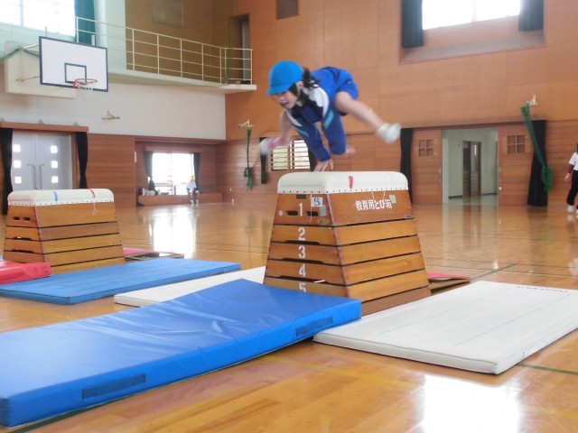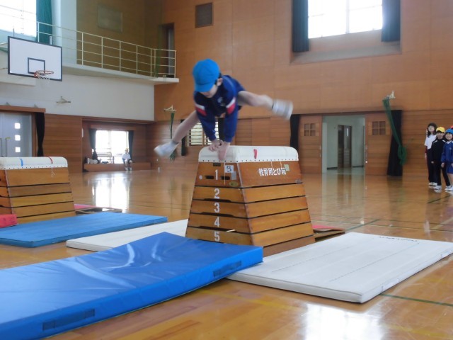 体育科では、跳び箱遊びをしています。何度も何度も繰り返し練習し、今日は練習の成果を発表しました。