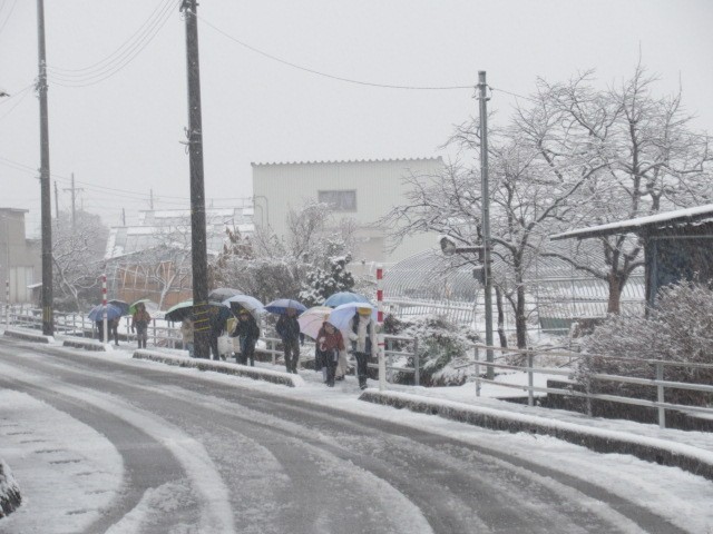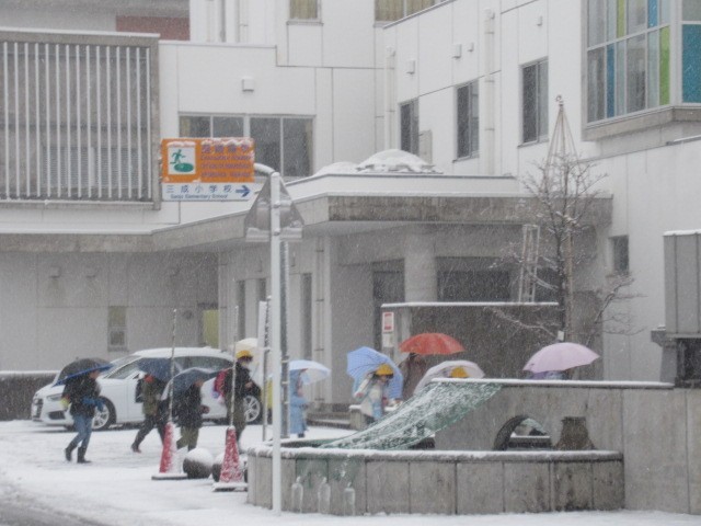 子供たち、降雪の中、がんばって登校しています・・・