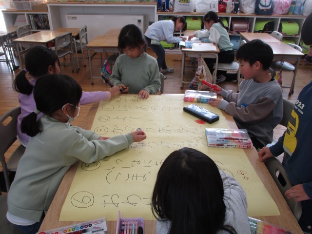 1年生は、生活科の「もうすぐ2年生」の学習で、2月13日(木)に予定してる新1年生さんとの交流会の準備を進めています。プログラムを書いたり、司会や学校案内等の役割になった子は、台詞を考えたりと、新1年生さんに楽しんでもらおうと、友達と協力しながら活動しています。