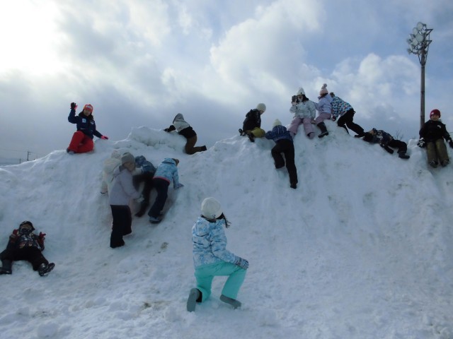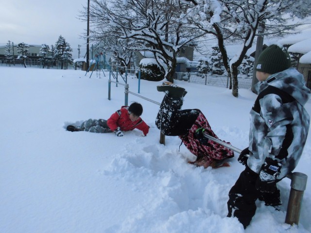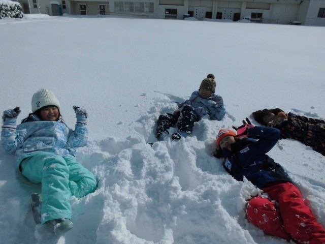 ふかふかの雪の中でおもいっきり遊んでいます。