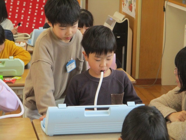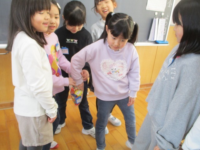 1年生は、係活動ごとに学級のみんなを楽しませようといろいろな企画を考えています。今日は、くじ引きをしたり、的当てをしたり、「チューリップ」の曲を鍵盤ハーモニカで吹くのを教えてくれたりと楽しい企画が盛りだくさんで子供たちはにこにこでした。