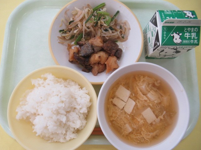 19日(水)今日の献立 公開日 2025/02/19 更新日 2025/02/19 給食室 ・ごはん ・牛乳 ・ナムル・鶏肉とレバーのカレー風味 ・かきたま汁※11時50分、検食終了。今日も美味しく出来上がっています。