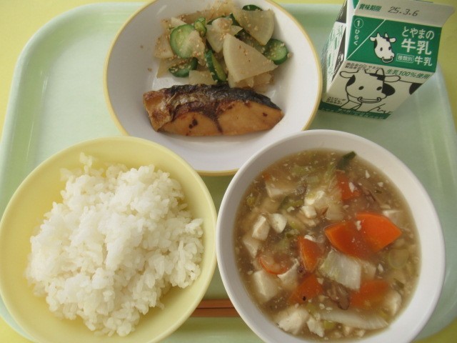 27日(木)今日の献立 公開日 2025/02/27 更新日 2025/02/27 給食室 ・ごはん ・牛乳 ・ふくらぎの西京焼き・華風和え ・えびと豆腐のうま煮※11時50分、検食終了。 「西京(さいきょう)焼き」は、西京味噌(白味噌)に漬け込んだ食材を焼いた、京都の郷土料理だそうです。白ごはんに、よく合います。
