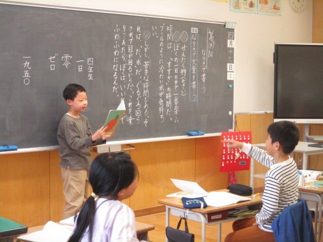 飼っている動物や、お気に入りの物になりきって文章を書きました。どんなときに嬉しいと感じたり、大変だと感じたりしているのか、気持ちを想像して楽しみました。発表タイムでは、友達のおもしろい文章を聞いて盛り上がりました。