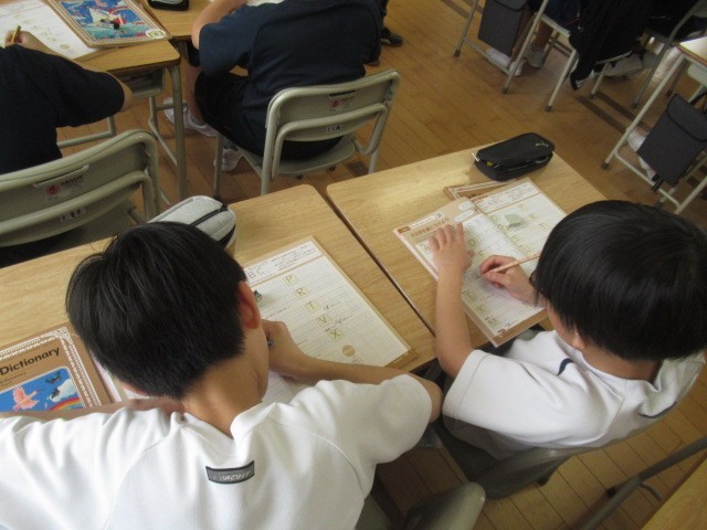 今日は、アルファベット「A」「B」「C」・・・書く練習もしました。