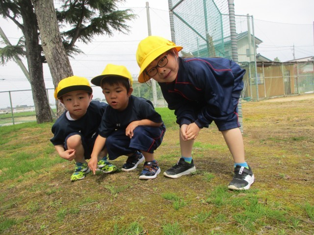 グラウンドで遊んだよ(1年生) 公開日 2025/04/21 更新日 2025/04/21 1年生 晴れた日にはグラウンドで外遊びをするのが大好きな子供たちです。広いグラウンドの中から、小さなきのこを見付けました。