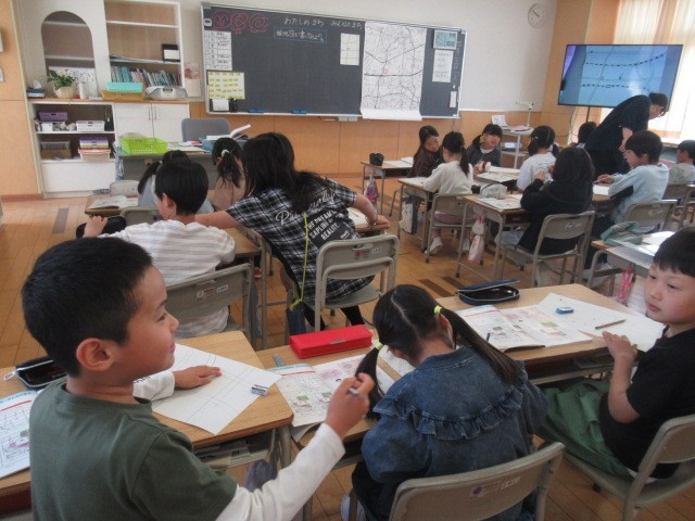 学校のまわりの様子、校区の様子、そして富山市の様子へと学習が進みます・・・