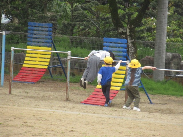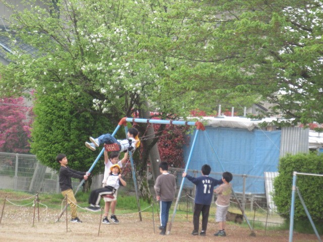 鬼ごっこ、サッカー、ブランコ、鉄棒、タイヤ・・・元気です!