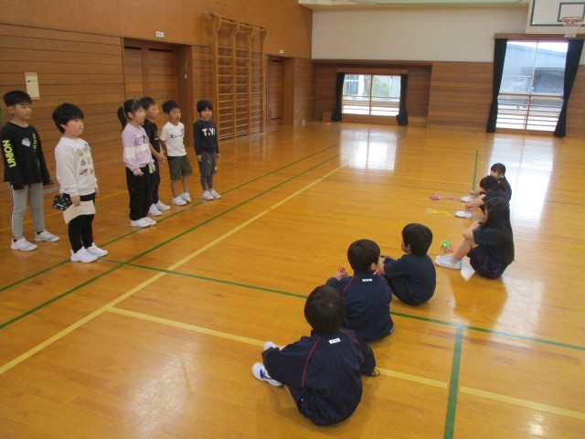 体育館担当チームは、体育館について紹介した後に、簡単な縄跳び大会を企画しました。