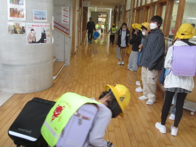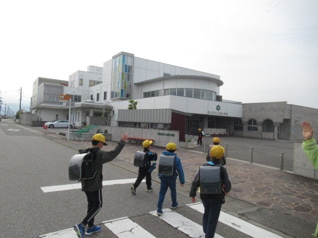 25日(金)登校の様子 公開日 2025/04/25 更新日 2025/04/25 5年生 曇り空の、穏やかな朝を迎えています。 風が少し強い時があり、手に持っていた安全帽子を飛ばされた、という子がいました。