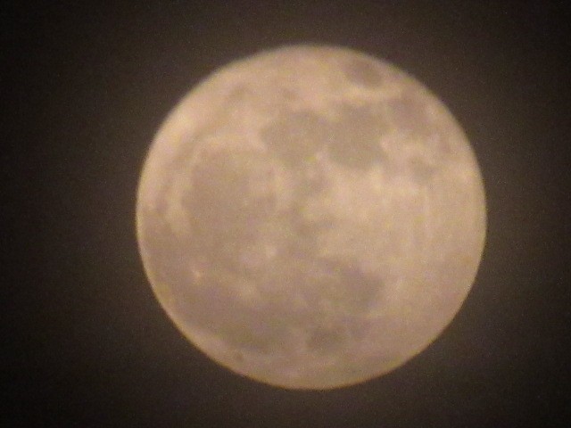 薄い雲?がかかっているのか、オレンジ色? 赤色? のような月でした!