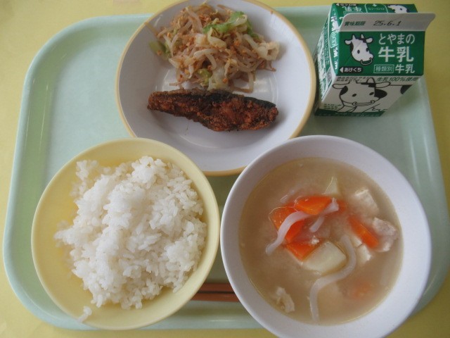 26日(月)今日の献立 公開日 2025/05/26 更新日 2025/05/26 給食室 ・ごはん ・牛乳 ・いり大豆和え・ふくらぎのえごまだれ ・豚汁※11時50分、検食終了。 1・2年生の「ふくらぎのえごまだれ」は、少し小さめ(-10g)です。