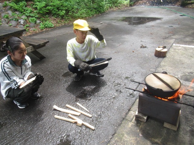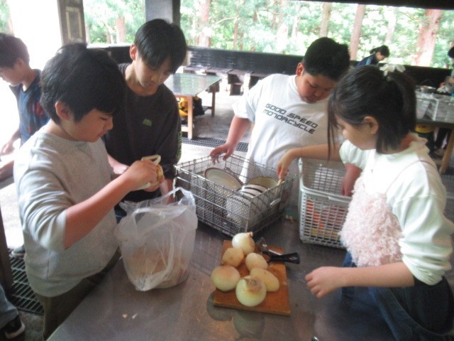 2日目の昼は、野外炊飯でカレーライスをつくりました。