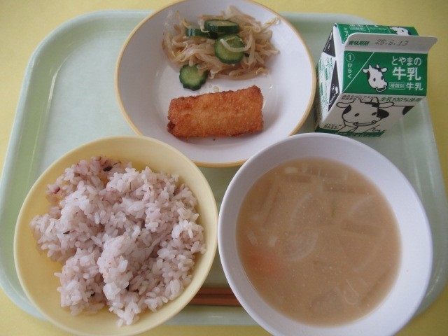 今日のメニューは、「雑穀入りごはん」「いかフライ」などと「かみかみ献立」です。