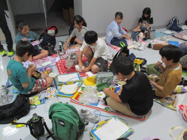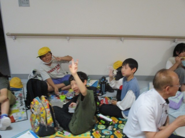 おうちの人が作ってくれたお弁当を嬉しそうに食べていました。昼食後は水橋4校でだるまさんが転んだをして交流しました。
