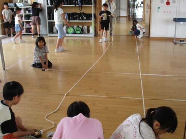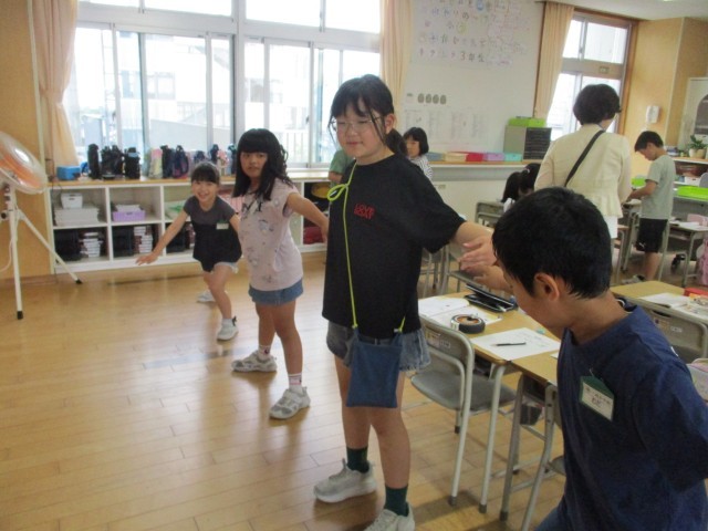 3年生は、算数科「長いものの長さのはかり方と表し方」の学習で、教室やワークスペースの縦や横の長さ、そこにある物の長さを巻き尺を使ってグループで測りました。手を広げて長さを予想したり、友達と協力して巻き尺を操作したりして長さを測りました。