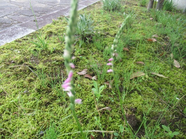 校門の植え込みに、薄紫の「ネジバナ」が咲き始めました。