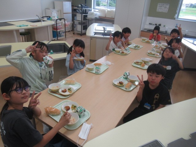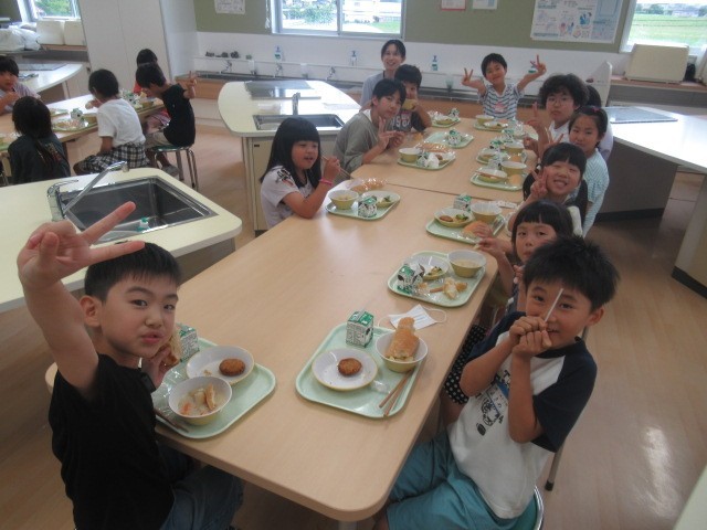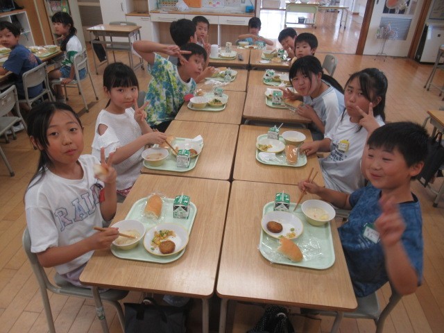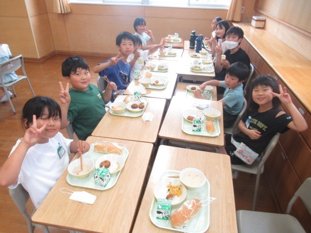 今日の給食は、なかよし班で食べました。いつもと違って、緊張しながら食べ始めましたが、少しずつ打ち解けてきたようです。