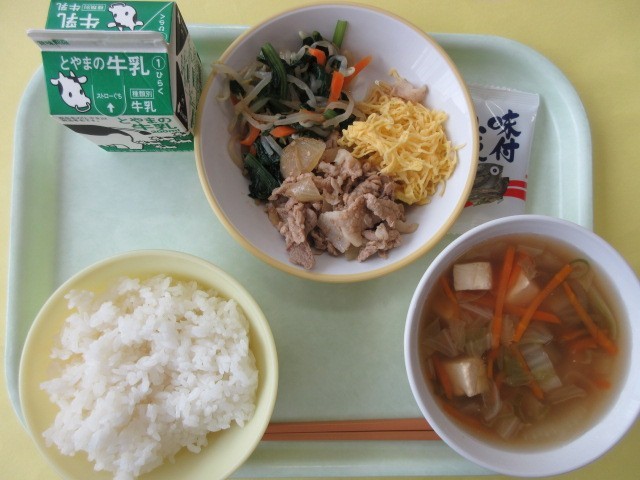 27日(金)今日の献立 公開日 2025/06/27 更新日 2025/06/27 給食室 ・ごはん ・牛乳 ・ビビンバ(焼肉) ・ビビンバ(錦糸卵) ・ビビンバ(ナムル) ・中華スープ ・味付け小魚※11時45分、検食終了。今日もおいしくいただきました。