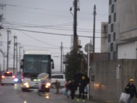 定刻に到着しました。元気に登校しています・・・ 今日は、4年生の校外学習(富山...