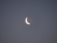 14日(土)午前6時頃、東の空、見事な「三日月」が見えました。「→」の方向(東...