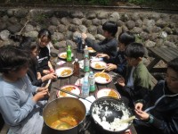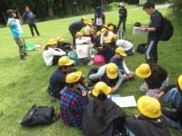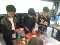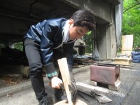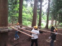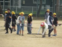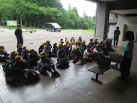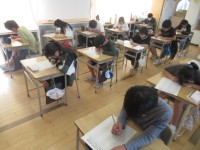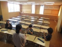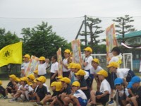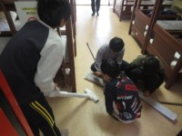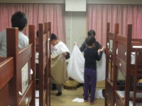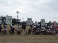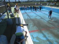 1年間の汚れがたまっているプールに驚きながらも、膝をつきながら一所懸命に清掃して...