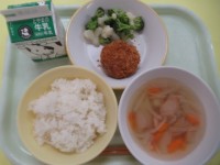 ・ごはん ・豚キムチ丼 ・牛乳・ゆでブロッコリー ・はくさいスープ ...