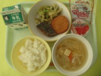 ・ごはん ・牛乳 ・さばの銀紙焼き ・ゆかり和え ・はくさい鍋※11時50分、検...