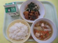 ・ごはん ・大豆ふりかけ ・牛乳 ・厚揚げのそぼろ煮・ホキの竜田揚げ...