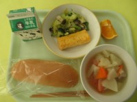 ・コッペパン ・牛乳 ・卵ロール ・ブロッコリーときのこのアヒージョ ・ポトフ ...