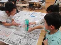 算数科「どちらがおおい」では、ペットボトルの中身の量を比べる活動を行いました。...