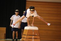 5年生の発表の中盤の見せ場は、跳び箱です。たくさん練習して跳び箱2回連続とびや台...