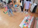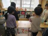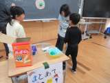 1年生は、2年生さんのおもちゃランドで遊びました。射的や輪投げ、モグラたたきなど...