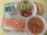 ・コッペパン ・牛乳 ・鶏肉の塩こうじ揚げ ・そえ野菜 ・ひよこ豆のスープ ・バ...