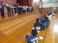 「校歌」と「君が代」を練習中です。卒業式や閉校式では、最高の歌を披露します。