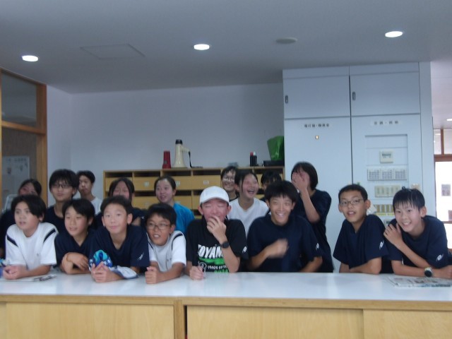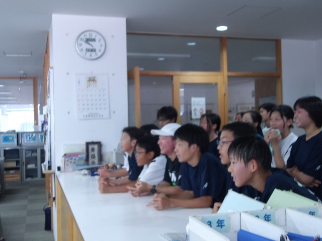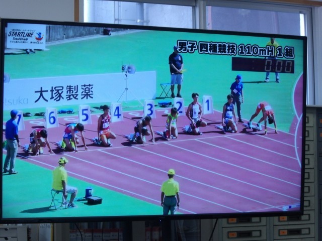 全日本中学校陸上競技選手権大会の4種競技に出場している生徒の応援を職員室のモニターでみんなで行いました。